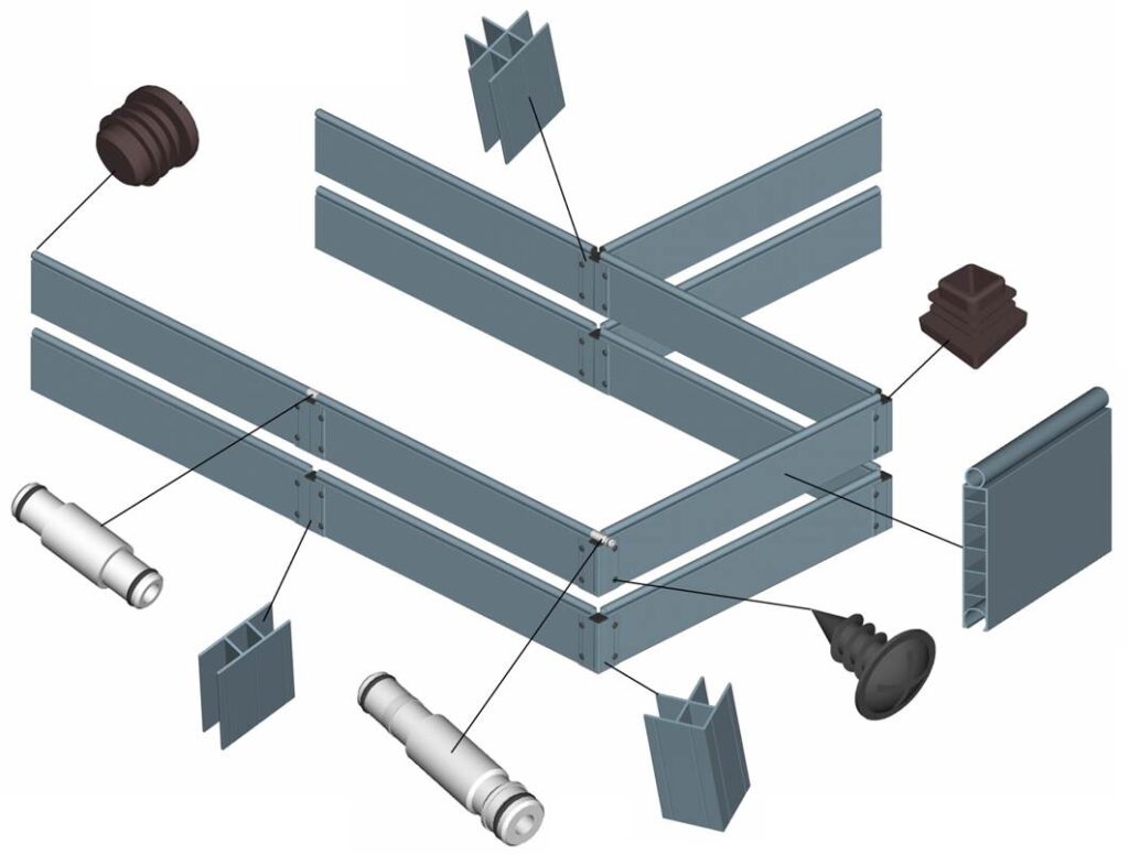 Надежность сборки ограждения достигается за счет жесткого скрепления его бортов прочными толстостенными соединителями.