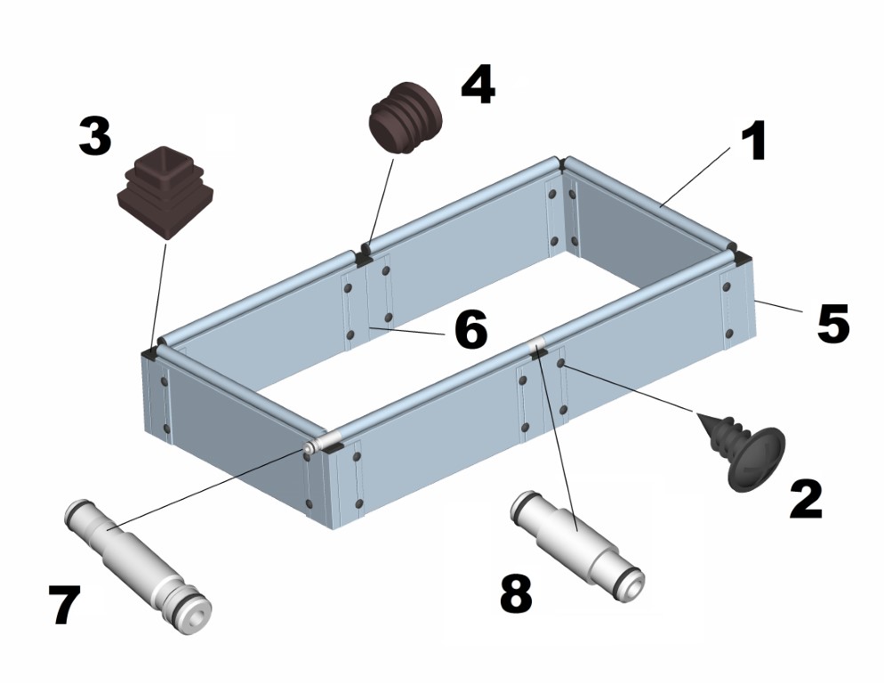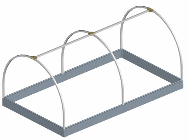 Детали каркаса мини-парника изготавливаются из стальной оцинкованной трубы сечением 20х20 мм, которые жестко соединяются между собой Т-образными стальными соединителями типа «краб». Пластиковые борта грядки, использованной в качестве основания мини-парника, также жестко фиксируются к стальному каркасу посредством прочных толстостенных соединителей из ПВХ. Срок службы деталей из ПВХ составляет свыше 20 лет и сопоставим со сроком службы пластиковых окон.
